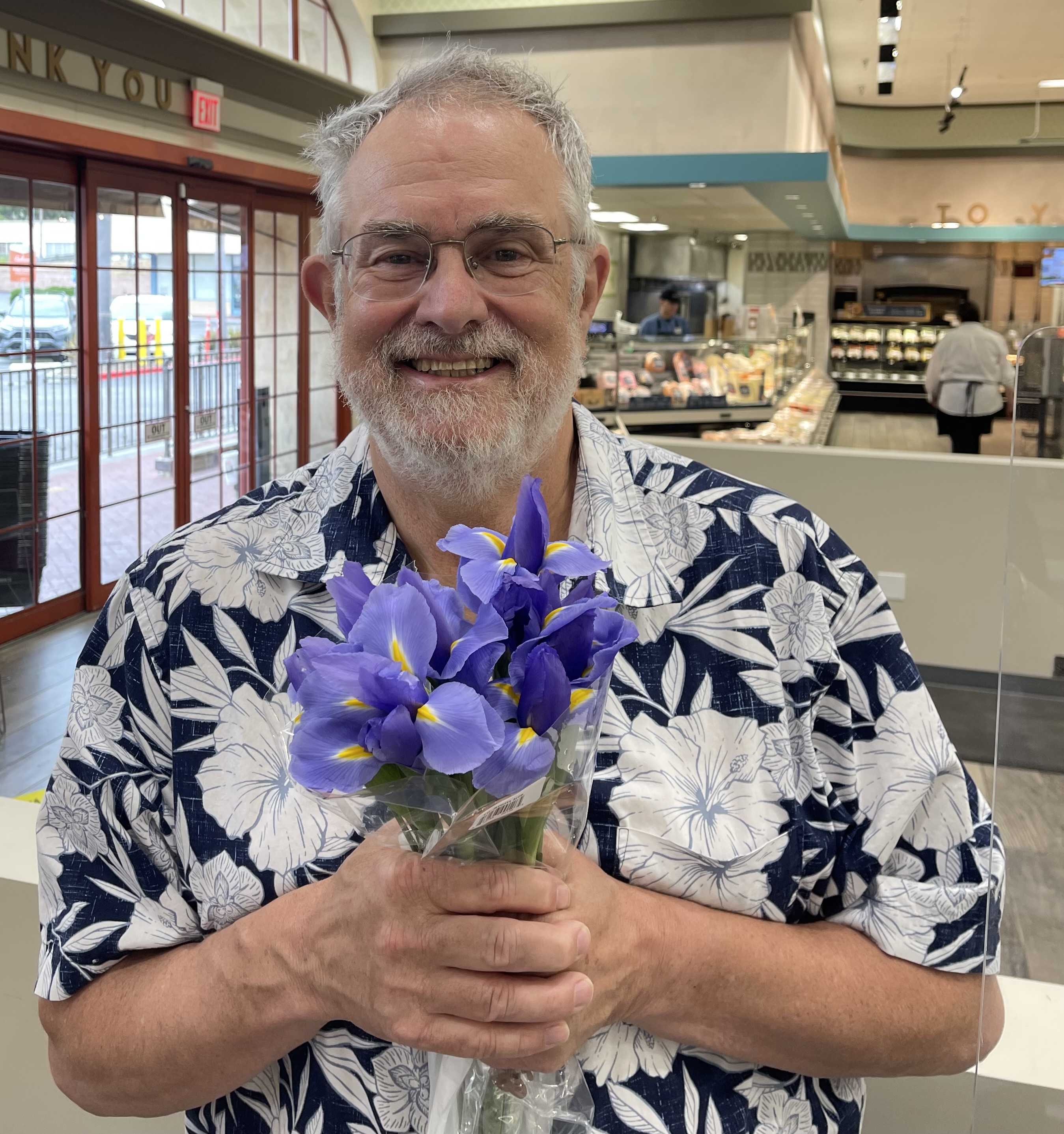I was glad for their presence. The purple irises made me feel somehow less alone, and more connected, to the scene I was about to enter. I only attend the Unitarian Society of Santa Barbara once a year, whenever I can make it out here from Massachusetts to visit friends. Even though I attend on-line, I always fear that someday physical geography will transcend spiritual geography, leaving this an empty ritual from which I must move on.