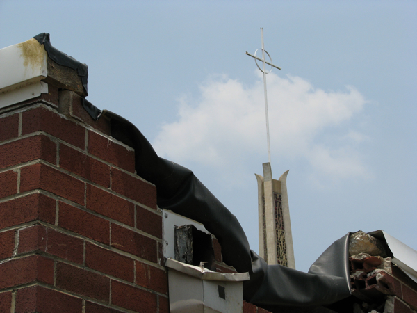 - Damaged roof of my home church, Covenant Presbyterian, June, 2011.