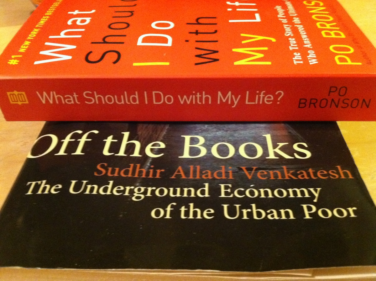 But I don’t have the luxury of dwelling on such things, if only because, even as I’m teaching Bronson for one community service course, I’m reading Sudhir Alladi Venkatesh for another. Off The Books carries the subtitle The Underground Economy of the Urban Poor, and what you get is exactly that – a close reporting of the complex exchanges and relationships that lends some order to the underground economy involving everyone from prostitutes and drug dealers to back alley mechanics and pastors. Many are hustling from day to day for simple survival, in a state of mutual vulnerability and mutual threat; they’re less worried about what they should do with their lives than where they can sleep tonight without being raped or robbed. Unlike Bronson with his reflective profiles, Venkatesh’s text is more dispassionate, preoccupied with reporting and analyzing the complexity of economic relationships over decades of urban history. But there is enough flesh and blood, fear and anger, coming through the prose to feel a little less sympathy for Bronson’s heroes as the size up their choices.