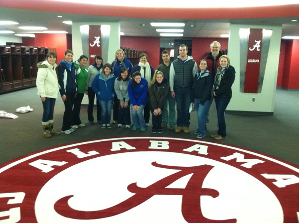 For your sake, I’ll try to channel this particular stream of consciousness into something close to chronological order – this is an end-of-year essay, after all. As it happens, 2012 started with a level of connection that set a near impossible standard for the rest of the year – students and staff from Assumption College, my employer, came to my tornado-ravaged hometown of Tuscaloosa, Alabama. Sam Wells would have approved: Our SEND students not only helped build a house for victim of the tornado, but asked a lot of questions and did a lot of listening, trying, as one student put it, simply “to understand.” In the spirit of cultural immersion, they insisted on the purchase of Alabama t-shirts and other fan apparel the very first afternoon, already looking ahead to the national championship showdown with LSU the next Monday night. I was surprised at the enthusiasm, then dismissed it as stereotypical tourist materialism – then to realize, finally, that this was in fact cultural immersion. What faster way to bypass all the differences between yourself and the place you’re visiting than to adopt your hosts’ sports teams? I’d done the exact same thing when I moved to New England. But the most significant image of connection came on the final night, when each student and staff member hugged my mother on the way out the door of her house, after a night of sharing barbecue and memories with some of the folks from Habitat Tuscaloosa.