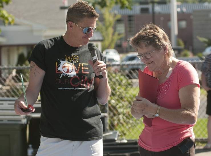 “You don’t have to interrupt your walk,” I holler.